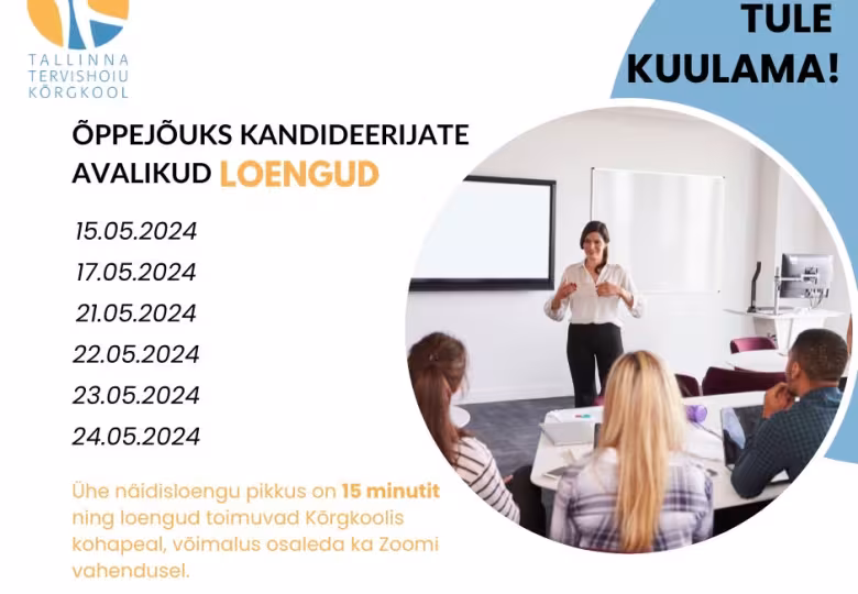 15. maist kuni 24. maini toimuvad Tallinna Tervishoiu Kõrgkooli õppejõuks kandideerijate avalikud loengud.